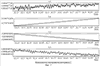 На фиг.1-4 маркеры указывают точки отвечающие телеметрическим данным (4), а кривые изображают сглаживающие эти данные сплайны.
