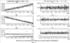 Детали движения спутника на соответствующих интервалах времени представлены на фиг.5-6. Здесь точками представлены измеренные значения кинетического момента и угловой скорости, а сплошные линии – результат аппроксимации.