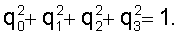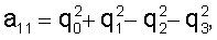 Положение системы Oy1y2y3 относительно системы OY1Y2Y3 задается с помощью нормированного кватерниона Q=(q0, q1, q2, q3), Матрица перехода от системы Oy1y2y3 к системе OY1Y2Y3 обозначается где aij – косинус угла между осями OYi и Oyj. Элементы этой матрицы выражаются через компоненты Q с помощью известных формул: