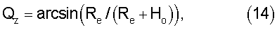 Угол полураствора видимого с КА диска Земли Qz определяется из треугольника ОРВ*: