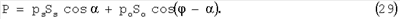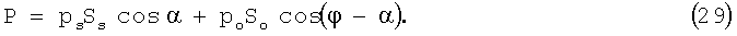 При отклонении N от S в сторону, с которой на СБ поступает отраженное от Земли излучение, на угол , сумма Р эффективных значений потоков прямого солнечного излучения и отраженного от Земли излучения, поступающих на рабочую поверхность панелей СБ, рассчитывается по формуле (см. [2], стр.57):