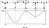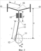 В режиме 2, наблюдаемом в интервале К=0…±1, правый и левый шарниры тяг, а вместе с ними и секции горизонтальных плоских лотков, совершают противофазные колебания, благодаря чему материал на двух соседних лотках перемещается в противоположных направлениях. При подъеме двигателя, осуществляемого с помощью регулировочного болта 18, в результате изменения расстояния с между осью диска 9 и осью О-О параметр К увеличивается, а крайние верхнее и нижнее положения верха штока будут подниматься вверх. При этом одно колебание не изменит свою амплитуду, а у второго происходит уменьшение амплитуды, и оно, по мере увеличения параметра К от 0 до 1, вырождается. На фиг.4 приведена зависимость перемещения лотка А( ) по горизонтальной оси O-O от угла поворота пальца при значениях безразмерного параметра К=0,2. Как видно из приведенного графика, колебания лотков стали асимметричны. Во время роста скорости движения лотка (при =0 /2) сила ускорения превышает силу трения материала о лоток и материал с возрастающей скоростью проскальзывает относительно поверхности лотка. При последующем резком замедлении скорости лотка (при = /2 ) сила трения материала о лоток изменяет свое направление на противоположное, скорость проскальзывания материала снижается, и в момент равенства сил замедления и трения (при   ) проскальзывание материала прекращается, и он начинает двигаться вместе с лотком, совершая прямой ход. В интервале   …2 наблюдается второе колебание лотка, у которого амплитуда и ускорения меньше и соответственно проскальзывания материала будут совершаться при малых значениях параметра К, а при значениях, приближающихся к 1, проскальзывания материала будут отсутствовать. По этой причине производительность устройства вибрационного перемещения, по мере приближения параметра K к 1, будет расти от нуля до максимальной. При опускании двигателя будут наблюдаться аналогичные закономерности, но при этом зависимость перемещения лотка А( ) по горизонтальной оси O-O от угла поворота пальца будет зеркальной (это проиллюстрировано на фиг.5), и направление перемещения материала по лоткам изменится на противоположное.