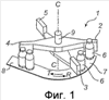 Как показано на фиг.1, устройство 1 подачи имеет первый толкатель 2 упаковок, второй толкатель 3 упаковок, третий толкатель 4 упаковок и четвертый толкатель 5 упаковок, предназначенные для перемещения упаковок 6 от приемного пункта 7 до пункта 8 выдачи. Первый толкатель 2 размещен в паре с третьим толкателем 4. Аналогичным образом второй толкатель 3 размещен в паре с четвертым толкателем 5. Толкатели в каждой паре располагаются диаметрально относительно друг друга вокруг общей центральной оси С, совпадающей с валом 9. Толкатели 2-5 выполнены с возможностью поворота вокруг центральной оси С.
