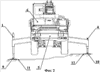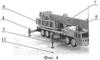 На фигуре 5 представлен вид сверху на макет автомобильного крана в вывешенном положении над котлованом. У крана задняя левая опора 1 снабжена гидроцилиндром вывешивания с ходом поршня большим, чем ходы поршней других гидроцилиндров вывешивания.