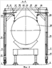 В заданном положении по вертикали поворотная балка, а следовательно, и изделие удерживается посредством домкратов. В случае необходимости поворота изделия относительно вертикальной оси осуществляют поворот балки относительно центрального штыря на стержнях со сферическими опорными поверхностями.
