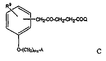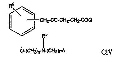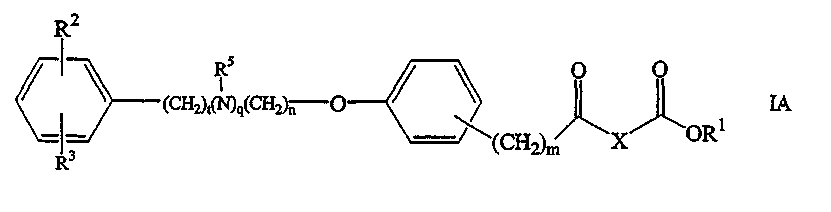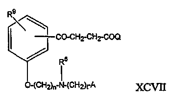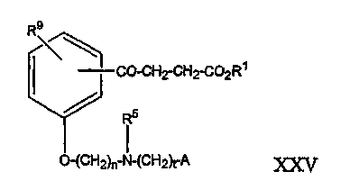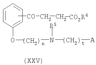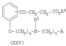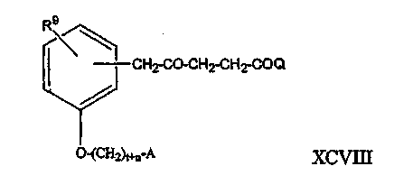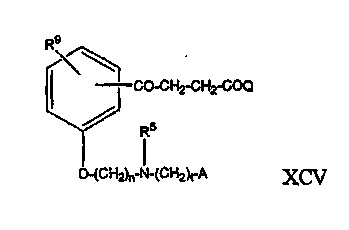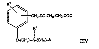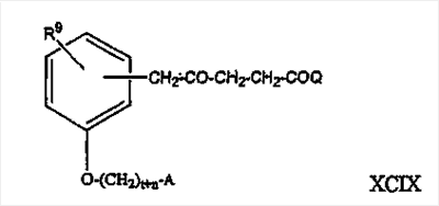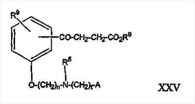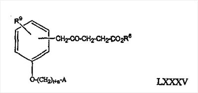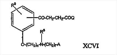 112. Применение биологически активного агента для получения лекарственного средства для лечения заболевания, выбранного из группы, состоящей из синдрома резистентности к инсулину и диабета, включая диабет типа I и диабет типа II; или для лечения или снижения вероятности развития атеросклероза, артериосклероза, ожирения, гипертензии, гиперлипидемии, ожирения печени, нефропатии, нейропатии, ретинопатии, изъязвления ступней, или катаракты, связанных с диабетом, или для лечения состояния, выбранного из группы, состоящей из гиперлипидемии и ожирения, где агент представляет собой соединение формулы I’, I, II, III, IV, V’, XCI, CXVI или CXVII: