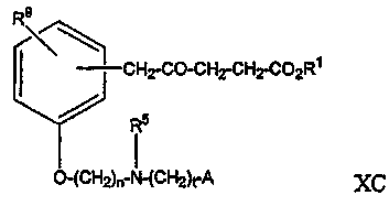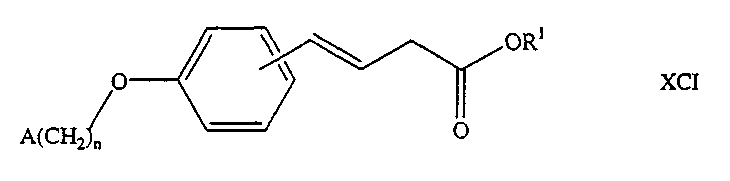 где n равен 1 или 2; R1 представляет собой водород или алкил, содержащий от 1 до 3 атомов углерода; и A представляет собой фенил, незамещенный или замещенный 1 или 2 группами, выбранными из: галогена, алкила, содержащего 1 или 2 атома углерода, перфторметила, алкокси, содержащего 1 или 2 атома углерода, и перфторметокси; или циклоалкил, имеющий от 3 до 6 кольцевых атомов углерода, где циклоалкил является незамещенным, или один или два кольцевых атома углерода независимо являются монозамещенными метилом или этилом; или 5 или 6-членное гетероароматическое кольцо, содержащее 1 или 2 гетероатома в кольце, выбранных из N, S и O, и гетероароматическое кольцо ковалентно связано с остатком соединения формулы XCI с помощью кольцевого атома углерода; или фармацевтически приемлемую соль соединения.