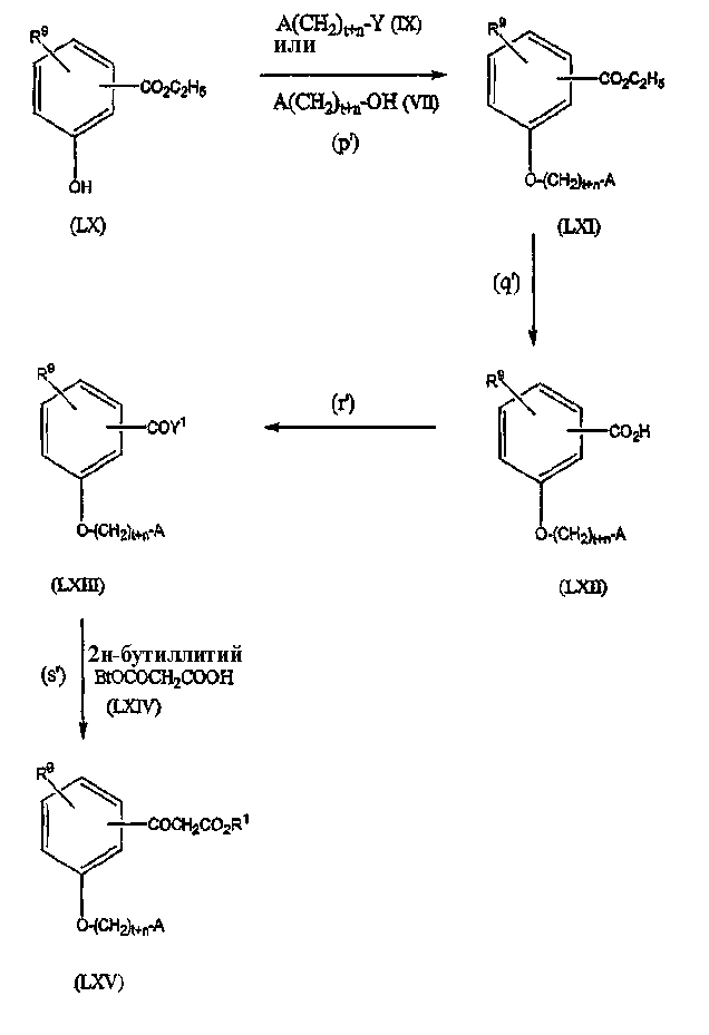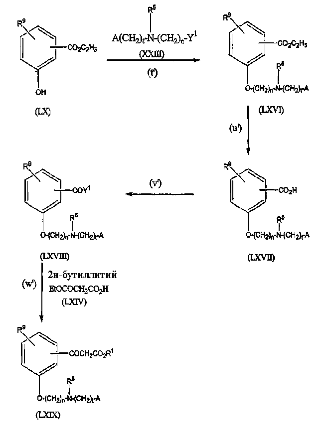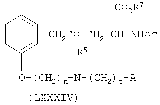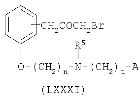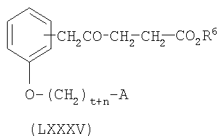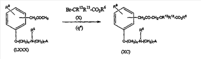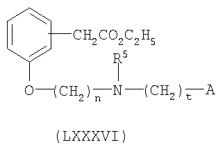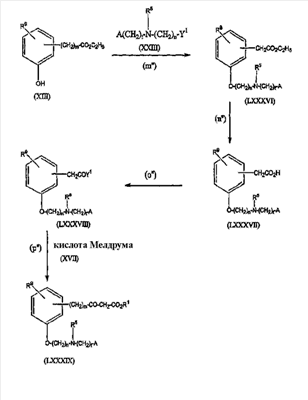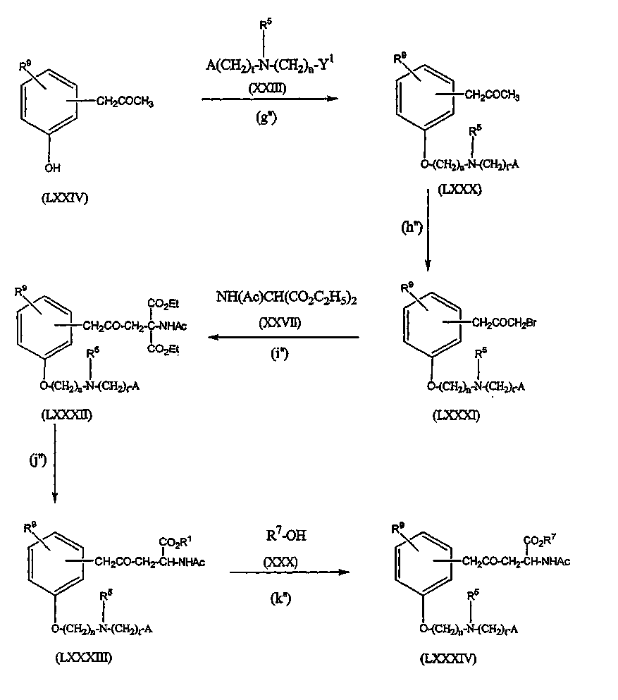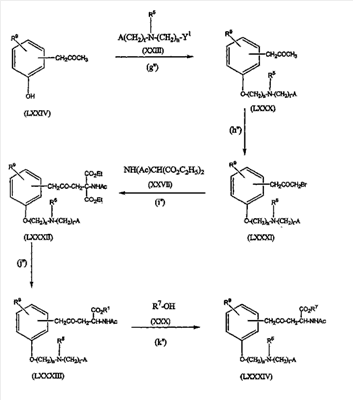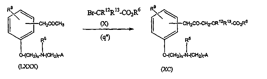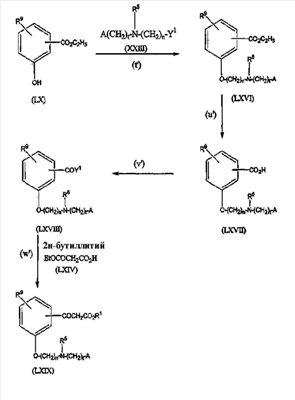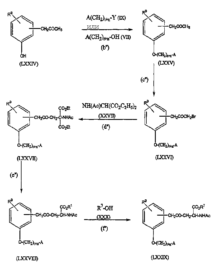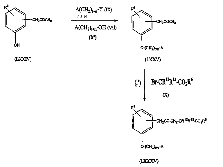 b) взаимодействие соединения формулы LXXV с Вг-СН2-СО2R6, где R6 является таким, как определено выше, с получением соединения формулы LXXXV.