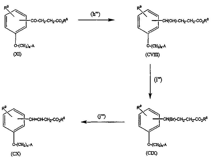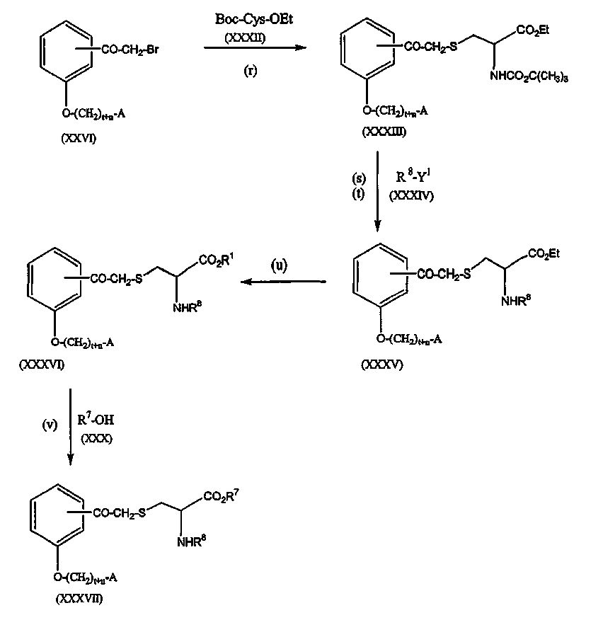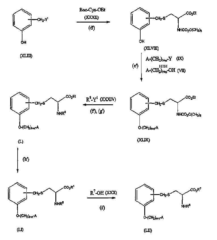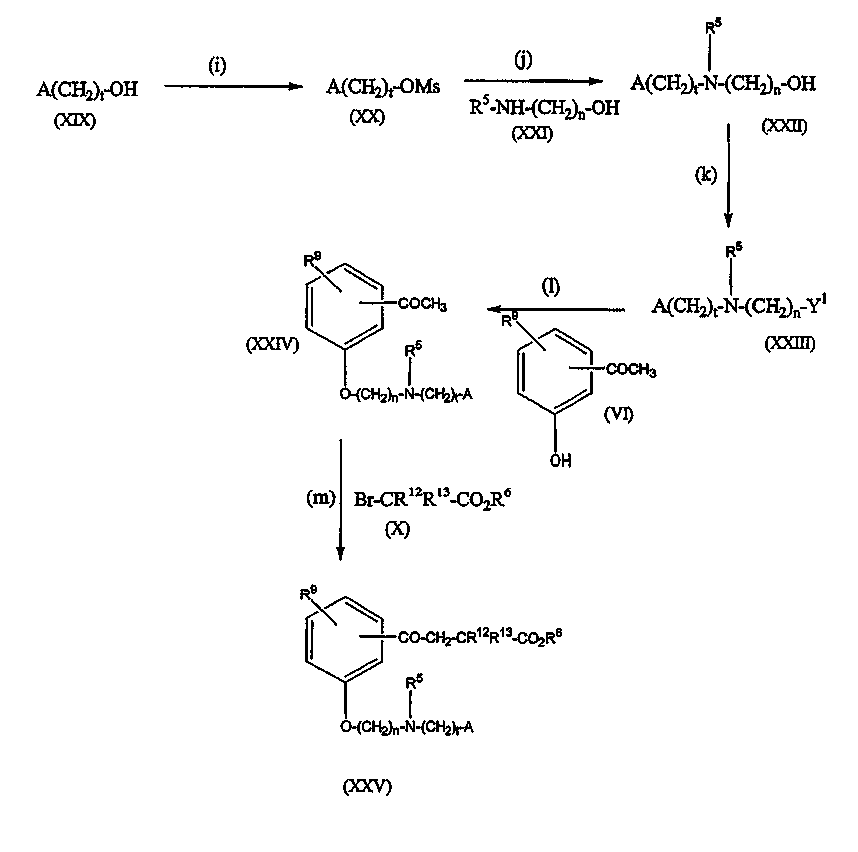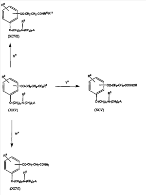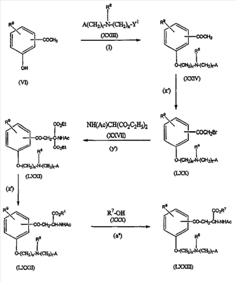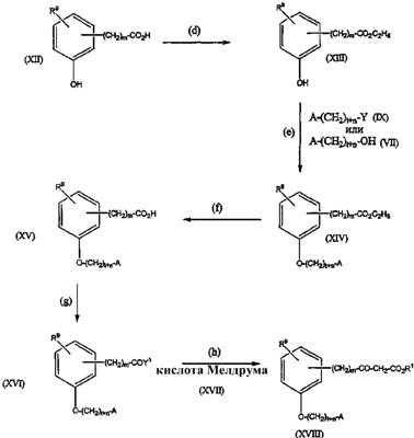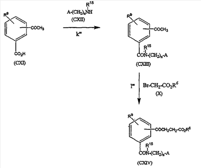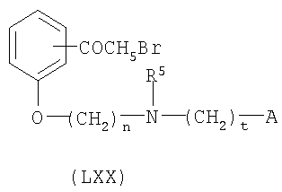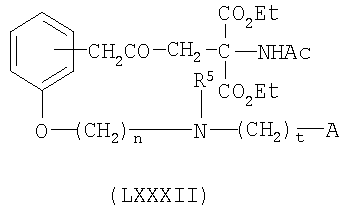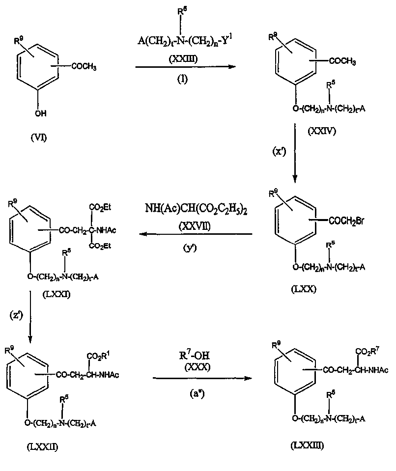 b) взаимодействие соединения формулы LXXV с Вг-СН2-СО2R6, где R6 является таким, как определено выше, с получением соединения формулы LXXXV.