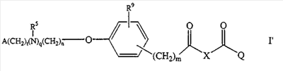 X представляет собой -СН2-, Q представляет собой OR1 и R1 представляет собой эитил; или X представляет собой -CH2CR12R13-, где каждый из R12 и R13 независимо представляет собой метил, Q представляет собой OR1 и R1 представляет собой водород или алкил, содержащий от 1 до 7 атомов углерода; или X представляет собой -СН2СН2– и Q представляет собой NR10R11, где один из R10 и R11 представляет собой водород или гидрокси, а другой представляет собой водород и остальные представляют собой водород;