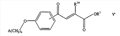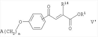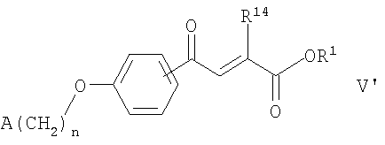где n равен 1 или 2; R1 представляет собой водород или алкил, содержащий от 1 до 7 атомов углерода; R14 представляет собой гидрокси или водород; и A представляет собой фенил, незамещенный или замещенный 1 или 2 группами, выбранными из: галогена, алкила, содержащего 1 или 2 атома углерода, перфторметила, алкокси, содержащего 1 или 2 атома углерода, и перфторметокси; или циклоалкил, имеющий от 3 до 6 кольцевых атомов углерода, где циклоалкил является незамещенным, или один или два кольцевых атома углерода независимо являются монозамещенными метилом или этилом; или 5 или 6-членное гетероароматическое кольцо, содержащее 1 или 2 гетероатома в кольце, выбранных из N, S и O, и гетероароматическое кольцо ковалентно связано с остатком соединения формулы V’ с помощью кольцевого атома углерода;