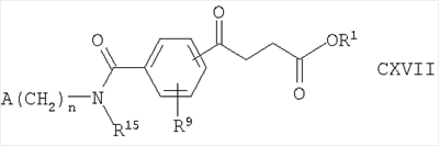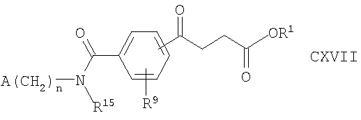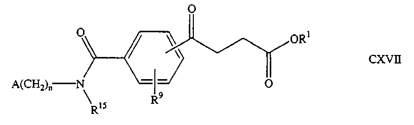где n равен 1 или 2; R1 представляет собой водород или алкил, содержащий от 1 до 3 атомов углерода; R15 представляет собой водород или алкил, содержащий от 1 до 3 атомов углерода; R9 представляет собой водород, галоген, гидрокси или алкокси, содержащий от 1 до 3 атомов углерода; и A представляет собой фенил, незамещенный или замещенный 1 или 2 группами, выбранными из: галогена, алкила, содержащего 1 или 2 атома углерода, перфторметила, алкокси, содержащего 1 или 2 атома углерода, и перфторметокси; или циклоалкил, имеющий от 3 до 6 кольцевых атомов углерода, где циклоалкил является незамещенным, или один или два кольцевых атома углерода независимо являются монозамещенными метилом или этилом; или 5 или 6-членное гетероароматическое кольцо, содержащее 1 или 2 гетероатома в кольце, выбранных из N, S и O, и гетероароматическое кольцо ковалентно связано с остатком соединения формулы CXVII с помощью кольцевого атома углерода; или фармацевтически приемлемую соль соединения.