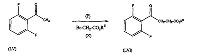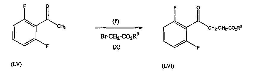 включающий взаимодействие 2′,6′-дифторацетофенона с Br-CH2-CO2R6, где R6 является таким, как определено выше, с получением соединения формулы LVI.