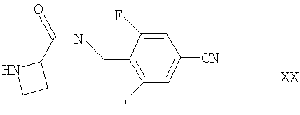 или его производного, которое возможно защищено по вторичной гидроксильной группе, в присутствии подходящего окислителя (например, комбинации подходящего оксиданта свободных радикалов (такого как TEMPO) и соответствующей гипохлоритной соли (такой как гипохлорит натрия) в условиях, известных специалистам в данной области, например при температуре между -10°С и комнатной температурой в присутствии подходящего растворителя (например, воды, ацетона или их смеси), подходящей соли (например, галогенида щелочного металла, такого как бромид калия) и подходящего основания (например, карбоната или гидрокарбоната щелочного металла, такого как гидрокарбонат натрия). Энантиомерно чистые формы соединений формулы II (то есть соединения, имеющие разные конфигурации заместителей при атоме углерода от Группы, присоединенные к соединениям формулы II в ходе такой стадии дериватизации, можно удалять либо перед любой последующей реакцией, либо на любой более поздней стадии синтеза соединений формулы I. Дополнительные группы можно удалять с помощью общепринятых методик (например, для сложных эфиров группы Соединения формулы III могут быть получены сочетанием азетидин-2-карбоновой кислоты с соединением формулы V, как она определена здесь ранее, например, в условиях, сходных с теми, что описаны здесь для получения соединений формулы I. Соединения формулы IV могут быть получены сочетанием соединения формулы II, как оно определено здесь ранее, с азетидин-2-карбоновой кислотой, например, в условиях, сходных с теми, что описаны здесь для получения соединений формулы I. Соединение формулы VI доступно с использованием известных и/или стандартных методик. Например, оно может быть получено (1) металлированием (причем металл может быть, например, щелочным металлом, таким как Li, или предпочтительно двухвалентным металлом, таким как Mg) соединения формулы Х