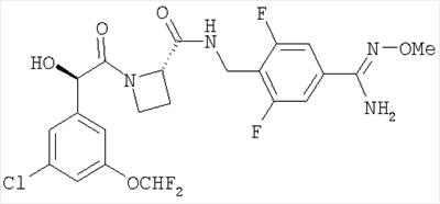 Изобретение относится к новому соединению Ph(3-CI)(5-OCHF2)-(R)CH(OH)C(O)-(S)Aze-Pab(2,6-diF)(OH) формулы или его фармацевтически приемлемой соли, которое может быть использовано в качестве активного ингредиента для изготовления лекарства для лечения состояния, при котором требуется ингибирование тромбина. 5 н. и 7 з.п.ф-лы.