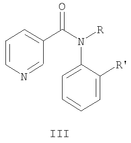 Замещенные анилиды никотиновой кислоты общей формулы I могут найти применение для борьбы с вредоносными грибами в медицине, ветеринарии, сельском хозяйстве, строительстве. Известны никотинамиды общей формулы II, где R означает алкил, алкенил, алкокси-группу, R’ означает арил, которые эффективны против мучнистой росы бобовых [Пат. US 4504484, 1982].
