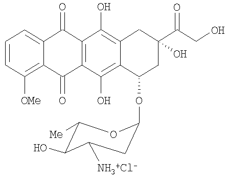 В патентах США №№4,112,076, 4,345,068, 4,861,870, 5,945,518 и 5,874,550 раскрыто получение гидрохлорида эпирубицина, формула которого приведена ниже, и его использование в качестве противоракового агента: