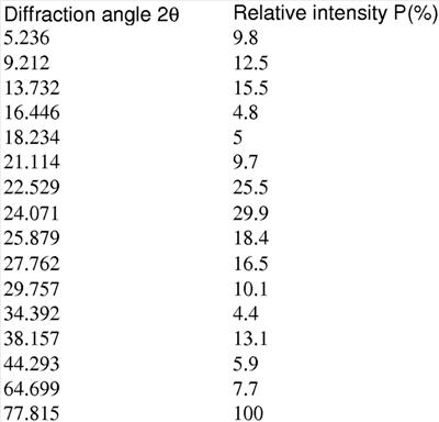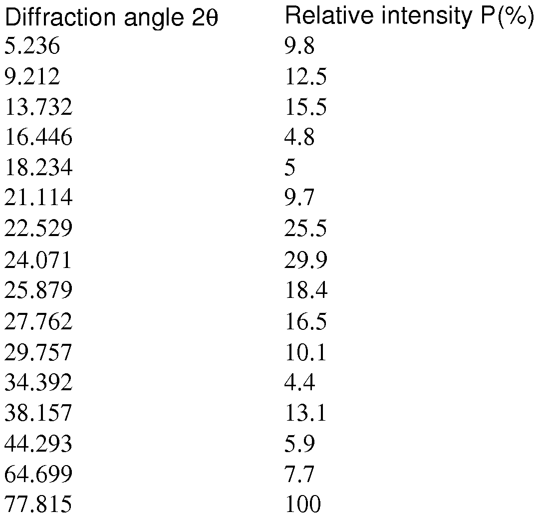 Кристаллический гидрохлорид эпирубицина II типа характеризуется тем, что он имеет дифракционную картину рентгеновского рассеяния на порошке, имеющую средние значения дифракционного угла (2 ) и относительной интенсивности Р (%), как показано в приведенной ниже Таблице: