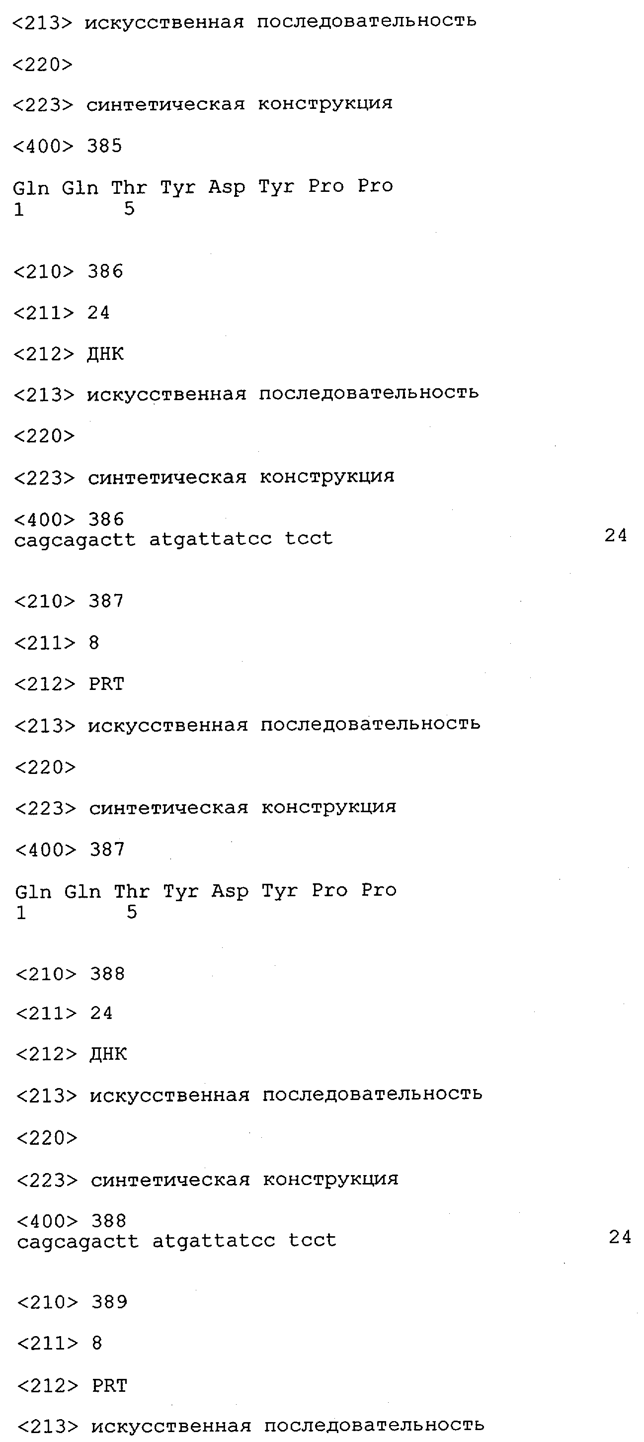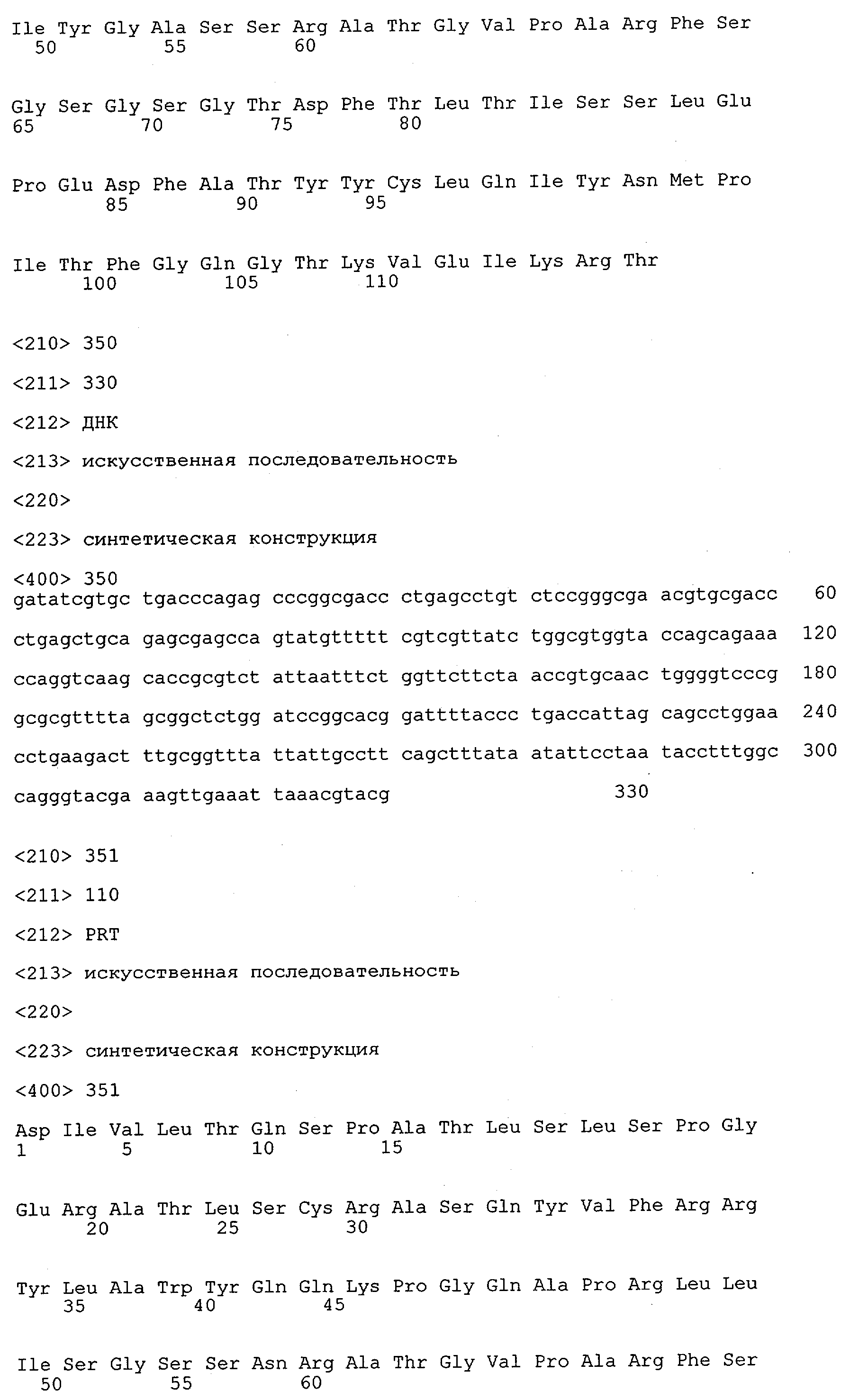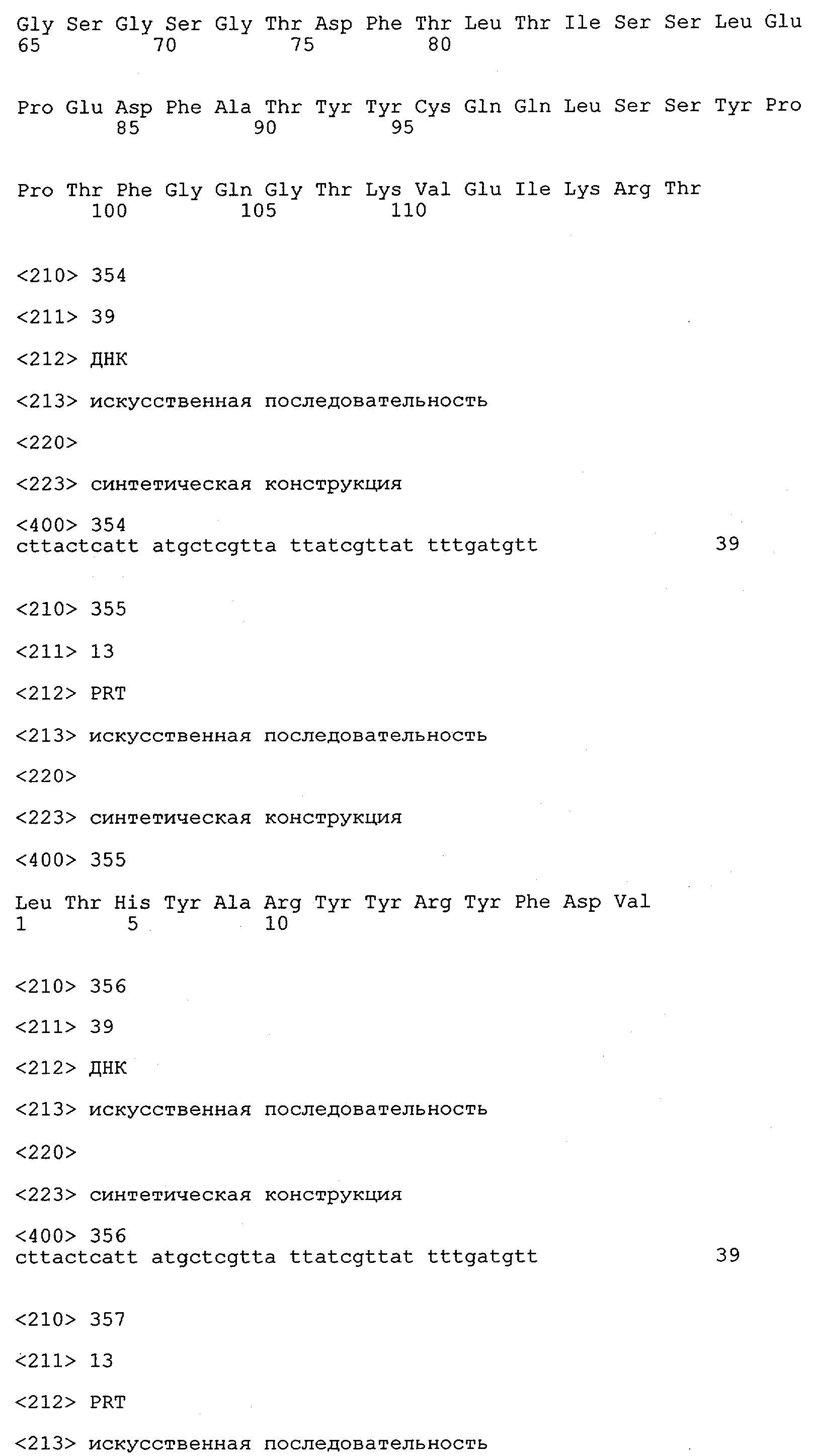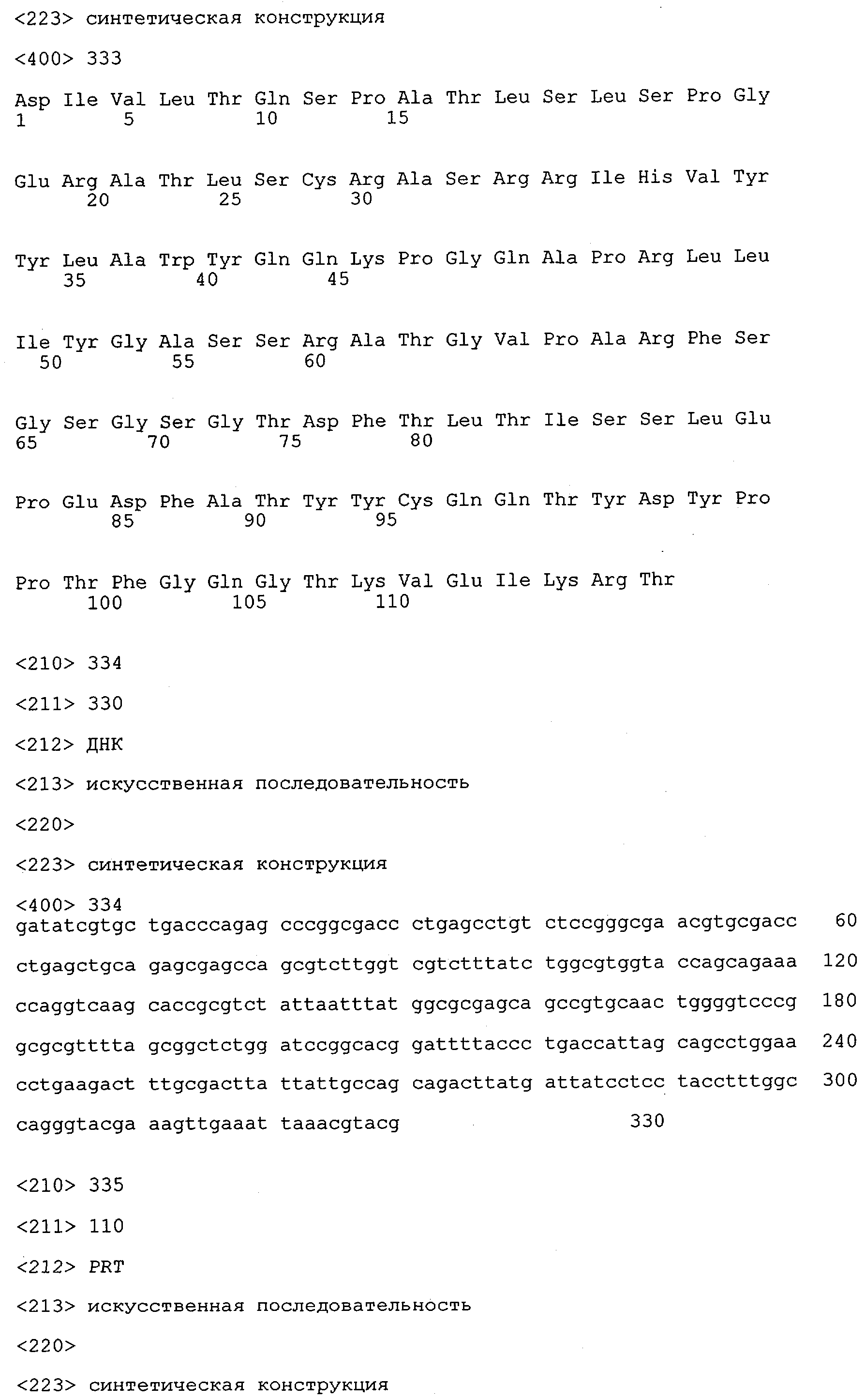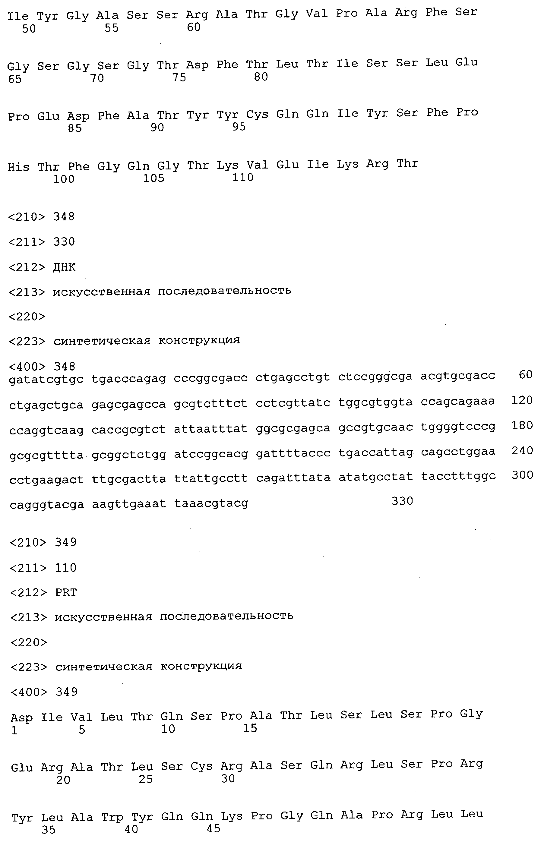 В противоположность этому отбор антител/молекул антител, предлагаемых в настоящем изобретении, обусловливается физической адгезией экспрессирующих Fab-фрагменты фагов с антигеном. В этом процессе отбора in vitro отсутствует стадия расщепления антигена. Фаги, экспрессирующие Fab-фрагмент, который обладает наиболее высокой аффинностью к антигену, отбирают и размножают. Синтетическая библиотека, применяемая в приведенных ниже примерах для отбора специфических молекул антител, предлагаемых в настоящем изобретении, наиболее пригодна для исключения любых стандартных ошибок, связанных с индивидуальными непрерывными эпитопами, которые часто встречаются в библиотеках, выведенных из иммунизированных В-клеток.