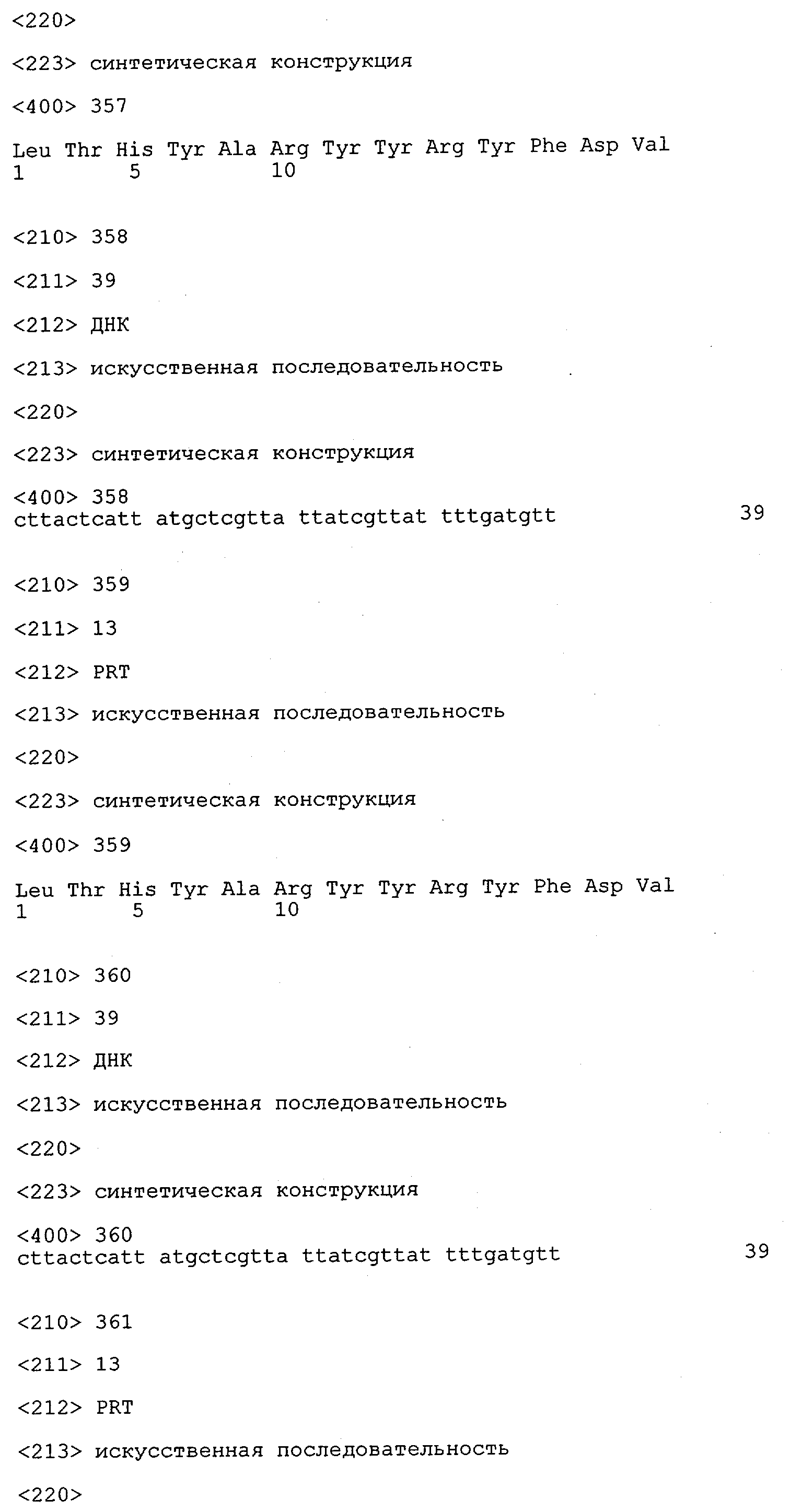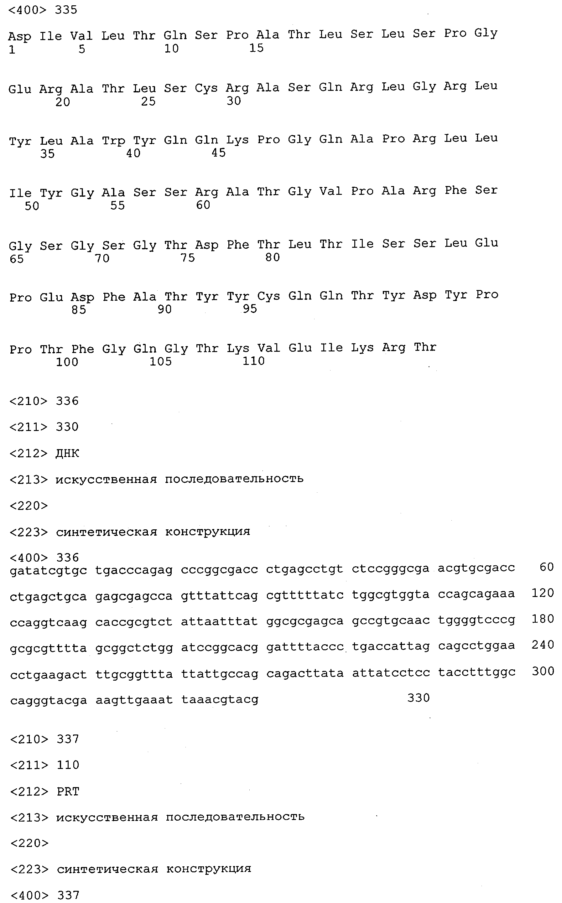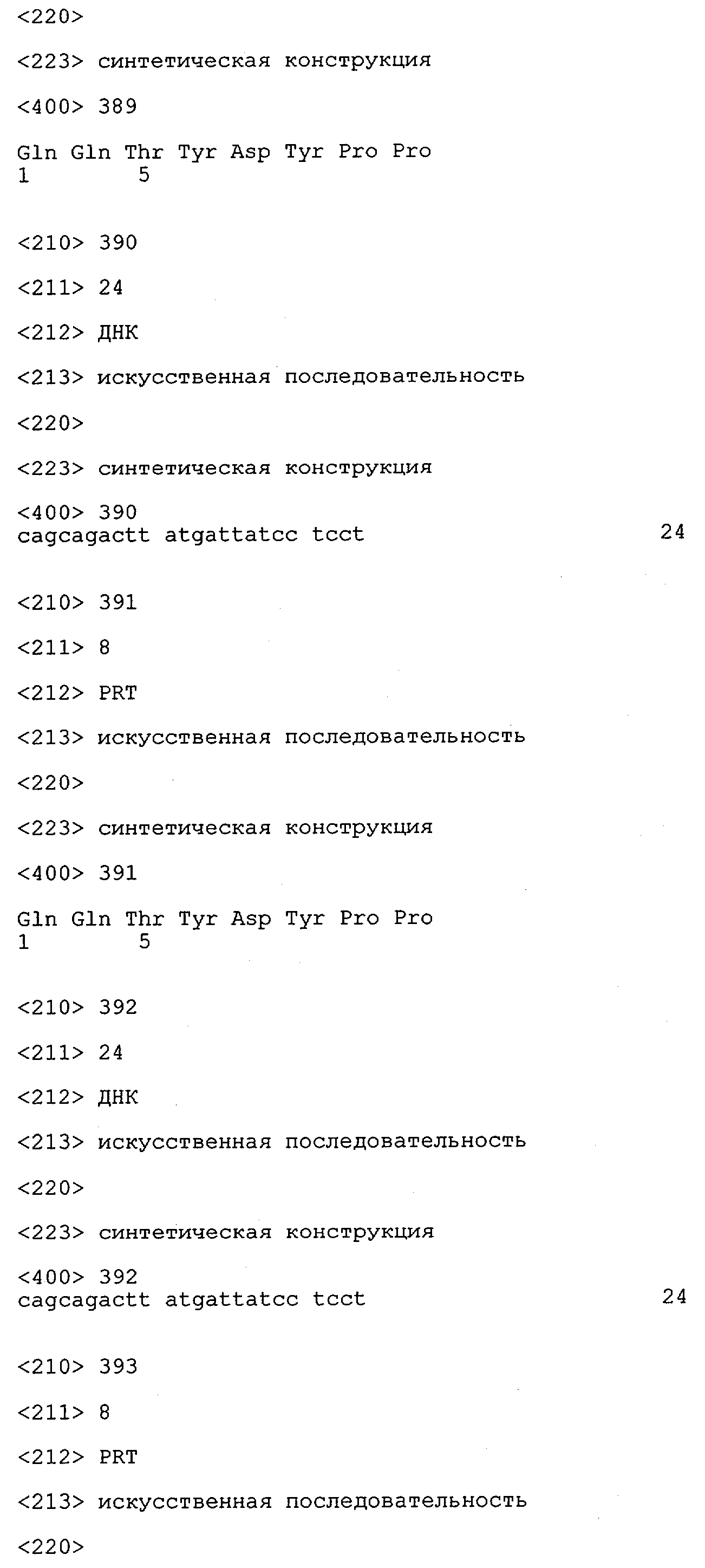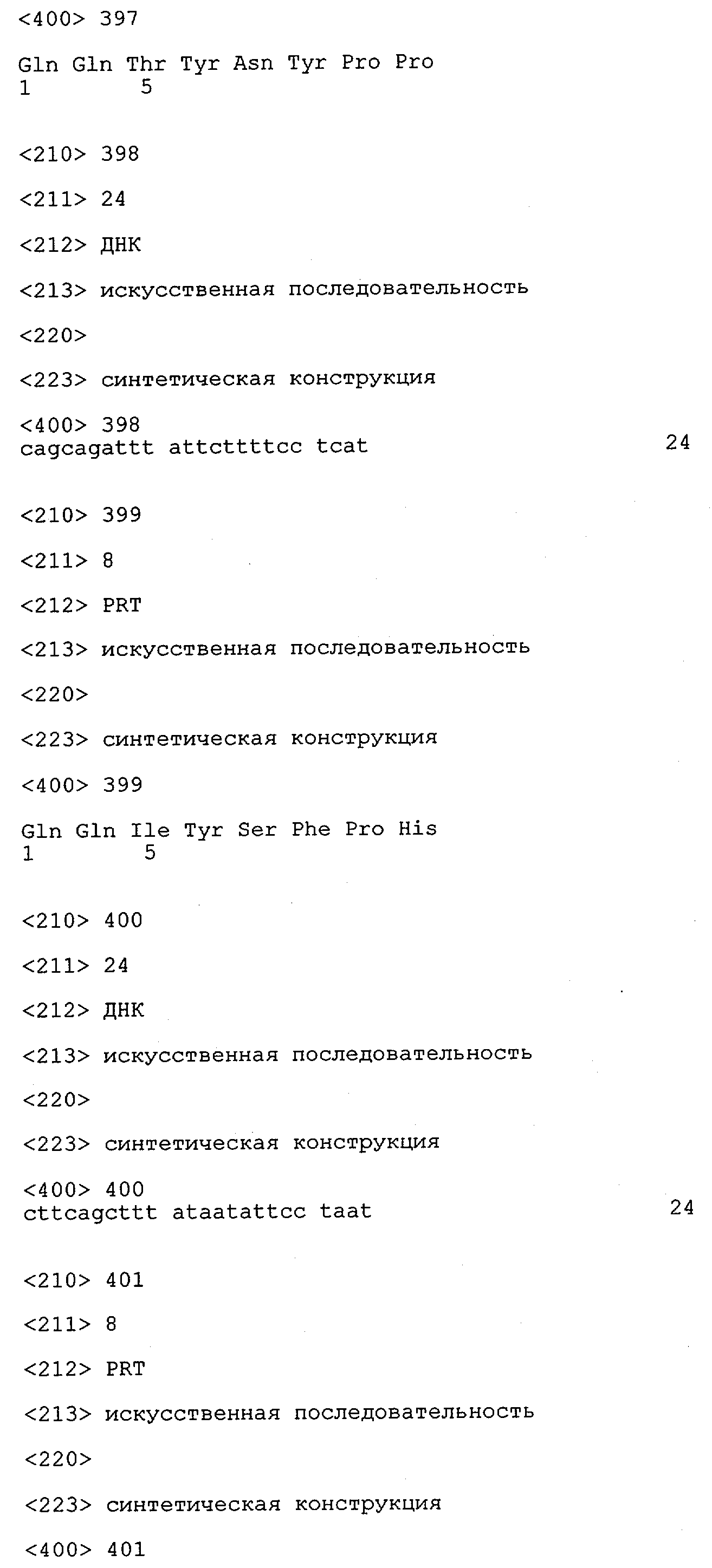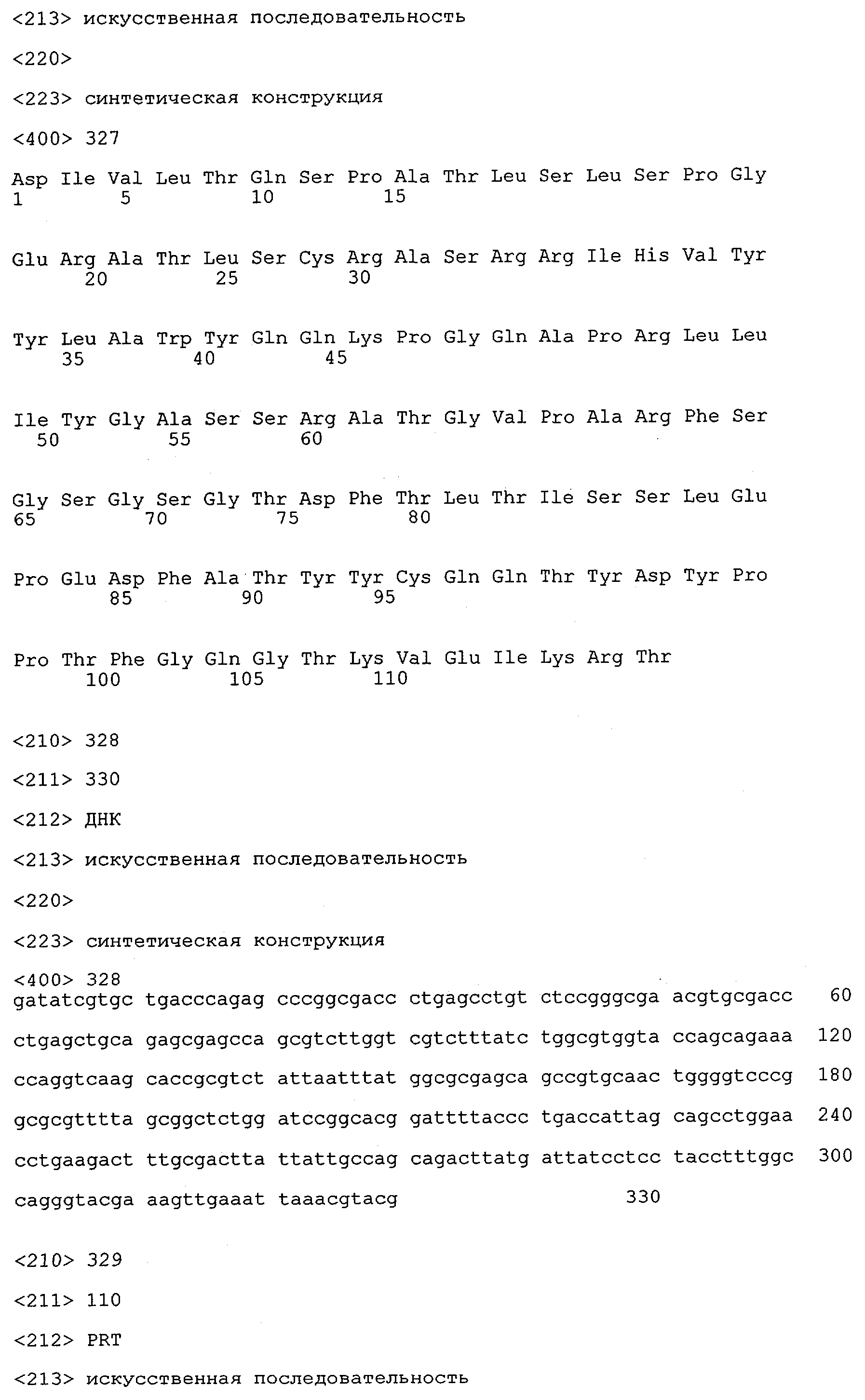 В противоположность этому отбор антител/молекул антител, предлагаемых в настоящем изобретении, обусловливается физической адгезией экспрессирующих Fab-фрагменты фагов с антигеном. В этом процессе отбора in vitro отсутствует стадия расщепления антигена. Фаги, экспрессирующие Fab-фрагмент, который обладает наиболее высокой аффинностью к антигену, отбирают и размножают. Синтетическая библиотека, применяемая в приведенных ниже примерах для отбора специфических молекул антител, предлагаемых в настоящем изобретении, наиболее пригодна для исключения любых стандартных ошибок, связанных с индивидуальными непрерывными эпитопами, которые часто встречаются в библиотеках, выведенных из иммунизированных В-клеток.