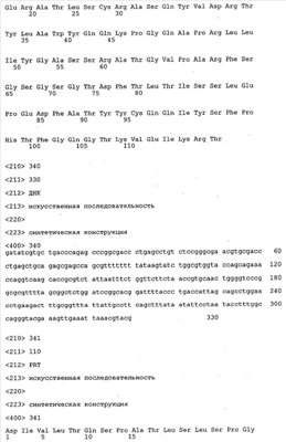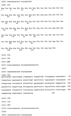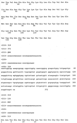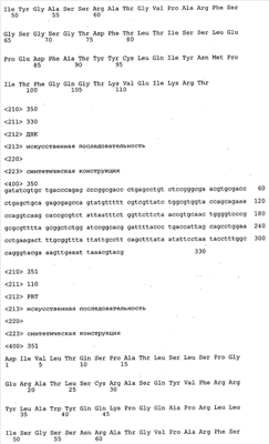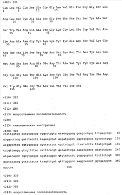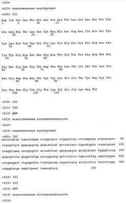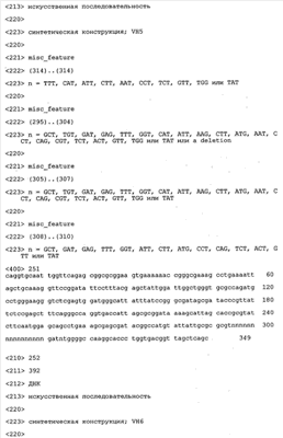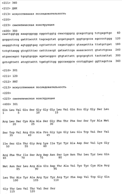 Кроме того, вектор, предлагаемый в настоящем изобретении, может помимо нуклеотидных последовательностей, предлагаемых в изобретении, содержать элементы, контролирующие экспрессию, которые обеспечивают правильную экспрессию кодирующих областей в пригодных хозяевах. Такие контролирующие элементы являются известными специалисту и могут представлять собой промотор, кассету для сплайсинга, кодон инициации трансляции, трансляционный и инсерционный сайт для интродукции вставки в вектор. Предпочтительно молекула нуклеиновой кислоты, предлагаемая в изобретении, функционально связана с указанными контролирующими экспрессию последовательностями, которые обеспечивают экспрессию в эукариотических или прокариотических клетках.
