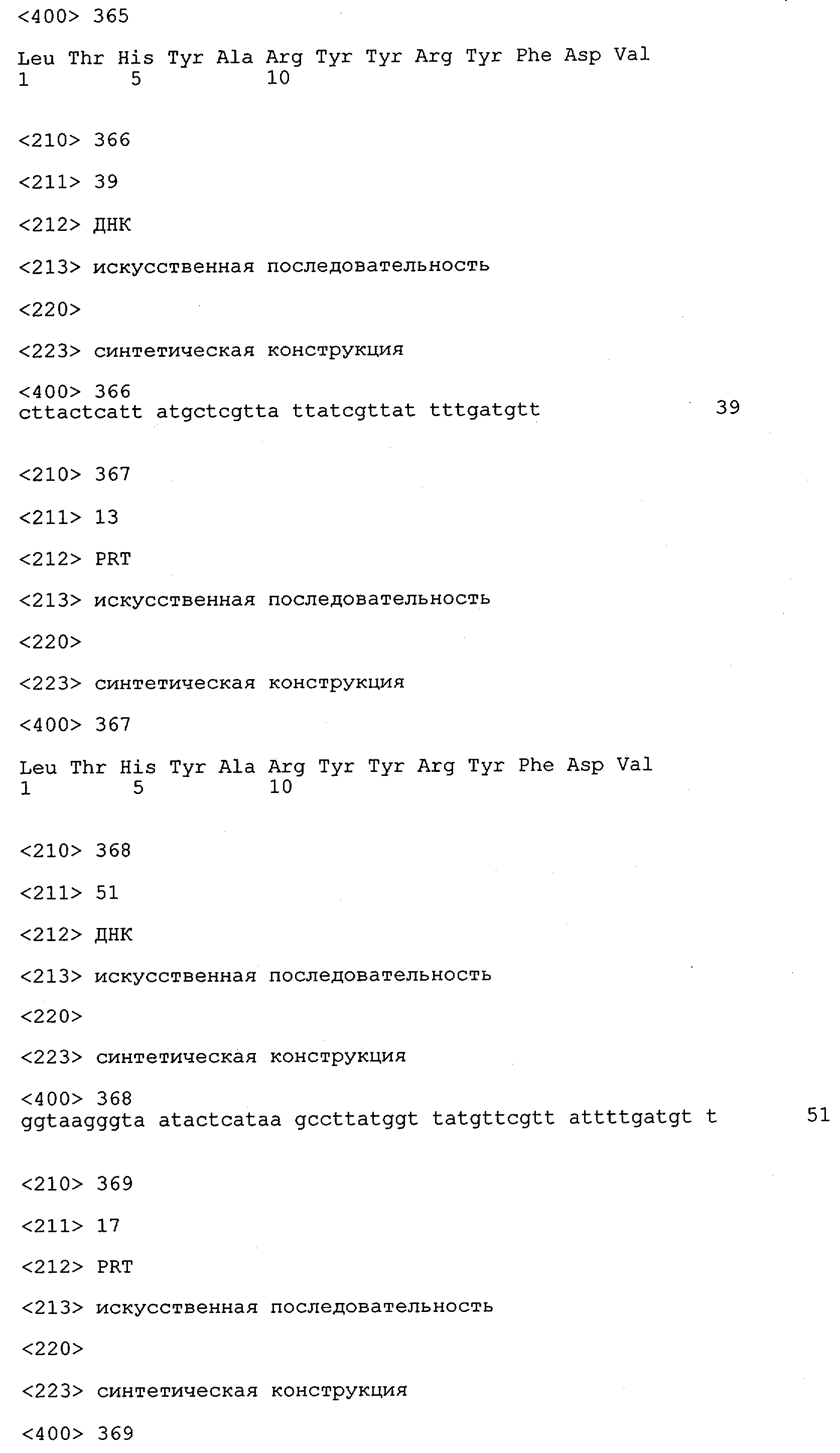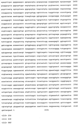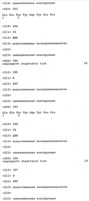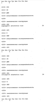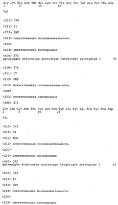 Кроме того, для дополнительных целей молекула нуклеиновой кислоты может содержать, например, тиоэфирные связи и/или нуклеотидные аналоги. Такие модификации могут быть ценными для стабилизации молекулы нуклеиновой кислоты при воздействии эндо- и/или экзонуклеаз в клетке. Такие молекулы нуклеиновых кислот можно транскрибировать с помощью соответствующего вектора, содержащего химерный ген, который обеспечивает транскрипцию указанной молекулы нуклеиновой кислоты в клетке. В этой связи следует также понимать, что полинуклеотид, предлагаемый в изобретении, можно применять для «направленного переноса гена» или для методов «генной терапии». Согласно предпочтительному варианту осуществления изобретения указанные молекулы нуклеиновых кислот являются мечеными. Методы обнаружения нуклеиновых кислот хорошо известны в данной области и представляют собой Саузерн- или Нозерн-блоттинг, ПЦР или удлинение праймера. Этот вариант осуществления можно применять для осуществления скрининга с целью подтверждения успешной интродукции молекул нуклеиновых кислот, предлагаемых в изобретении, при генной терапии.