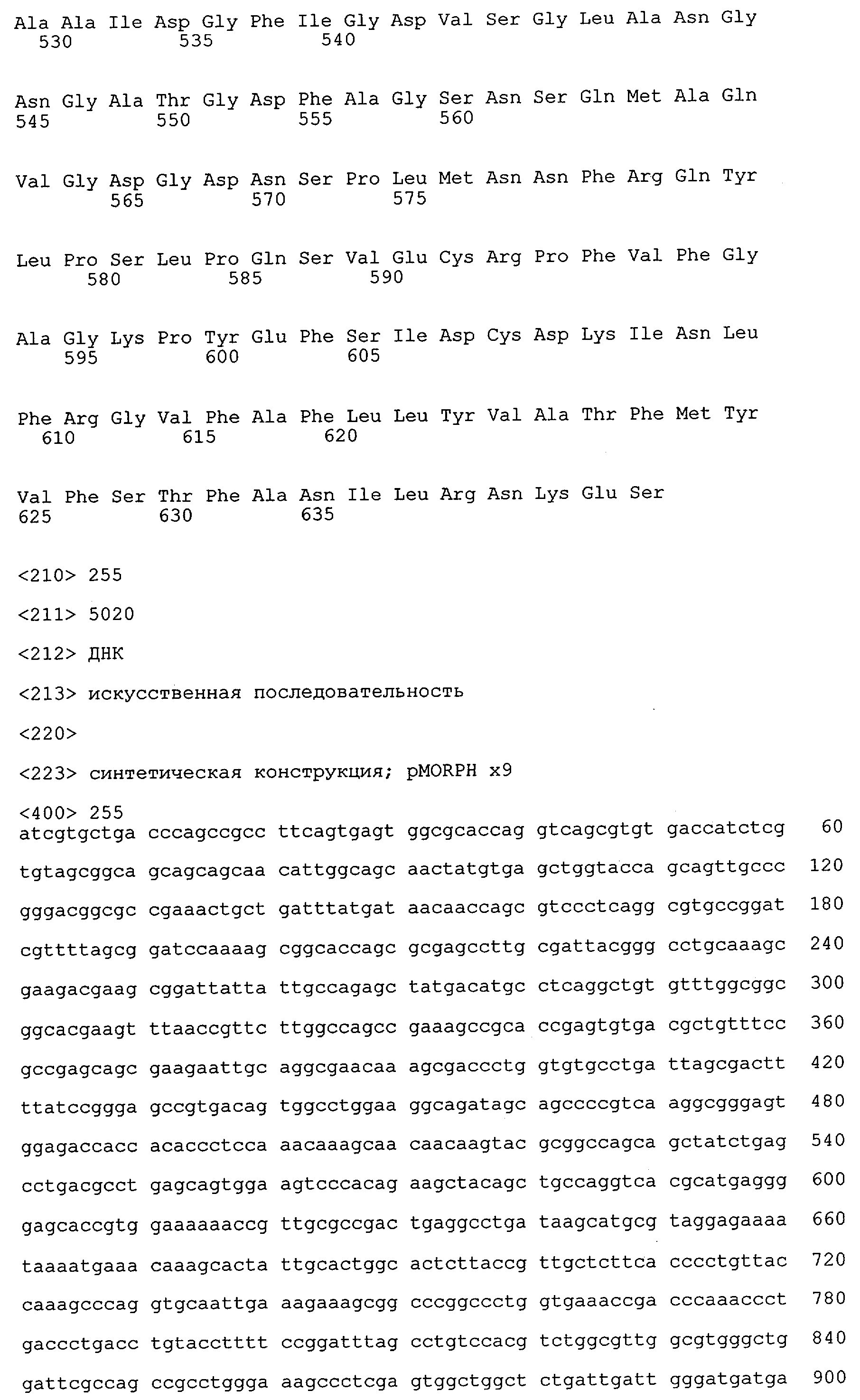 Молекулы(а) нуклеиновых(ой) кислот(ы), предлагаемые(ая) в изобретении, могут(жет) представлять собой полученную рекомбинантным путем химерную молекулу нуклеиновой кислоты, которая несет любую из вышеуказанных молекул нуклеиновых кислот либо индивидуально, либо в сочетании. Предпочтительно молекула нуклеиновой кислоты, предлагаемая в изобретении, является частью вектора.