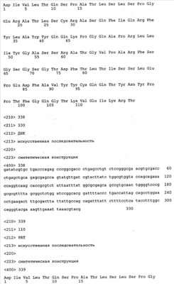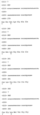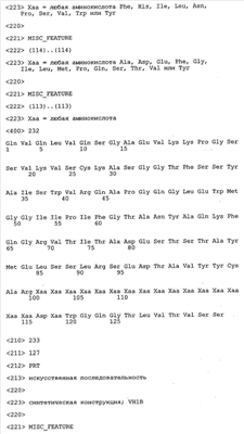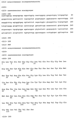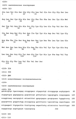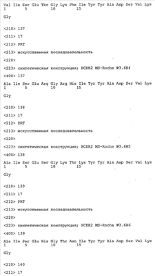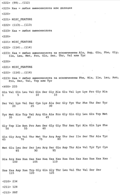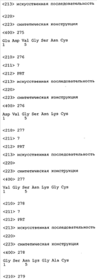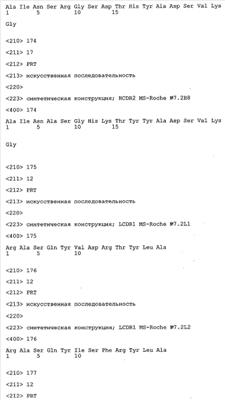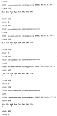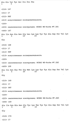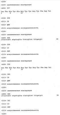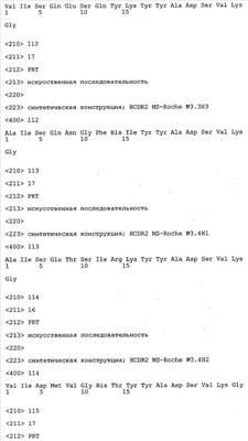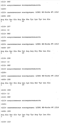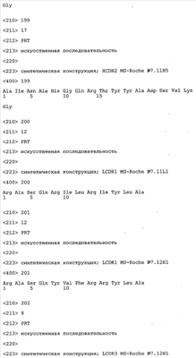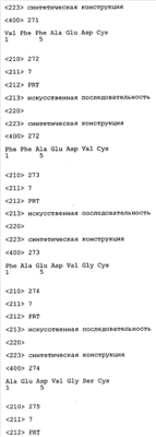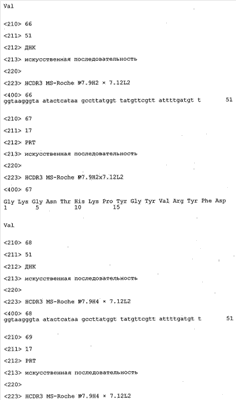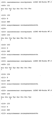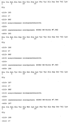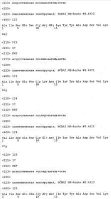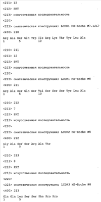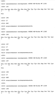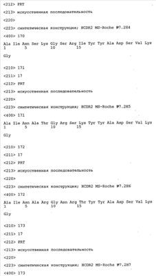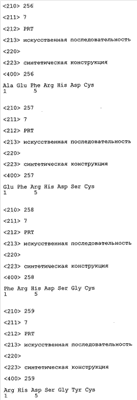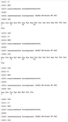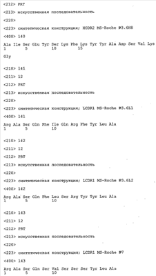 Следует отметить, что методы созревания аффинности хорошо известны в данной области, и они описаны ниже в примерах и среди прочего у Knappik, J. Mol. Biol. 296, 2000, с. 55; Krebs, J. Imm. Meth. 254, 2000, сс.67-84; WO 01/87337; WO 01/87338; US 6300064; ЕР 96929278.8, а также в процитированных ниже ссылках.