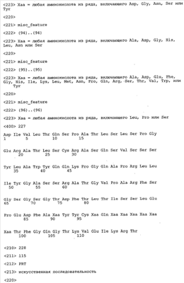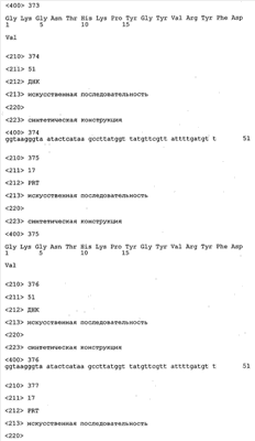 Специалисту в данной области должно быть очевидно, что к молекуле нуклеиновой кислоты, предлагаемой в изобретении, можно добавлять регуляторные последовательности. Например, можно применять промоторы, энхансеры транскрипции и/или последовательности, которые могут индуцировать экспрессию полинуклеотида, предлагаемого в изобретении. Приемлемой индуцибельной системой является, например, регулируемая тетрациклином система экспрессии генов, описанная, например, у Gossen и Bujard (Proc. Natl. Acad. Sci. USA 89, (1992), сс.5547-5551) и у Gossen и др. (Trends Biotech. 12, 1994, сс.58-62), или индуцируемая дексаметазоном система экспрессии генов, описанная, например, у Crook, EMBO J. 8, 1989, сс.513-519.