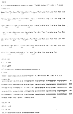 7. Молекула антитела по п.1, где антитело выбирают из группы, включающей MSR-3, -7 и -8 или версию с созревшей аффинностью MSR-3, -7 или -8, где MSR-3, -7 и -8 определены в табл.10.