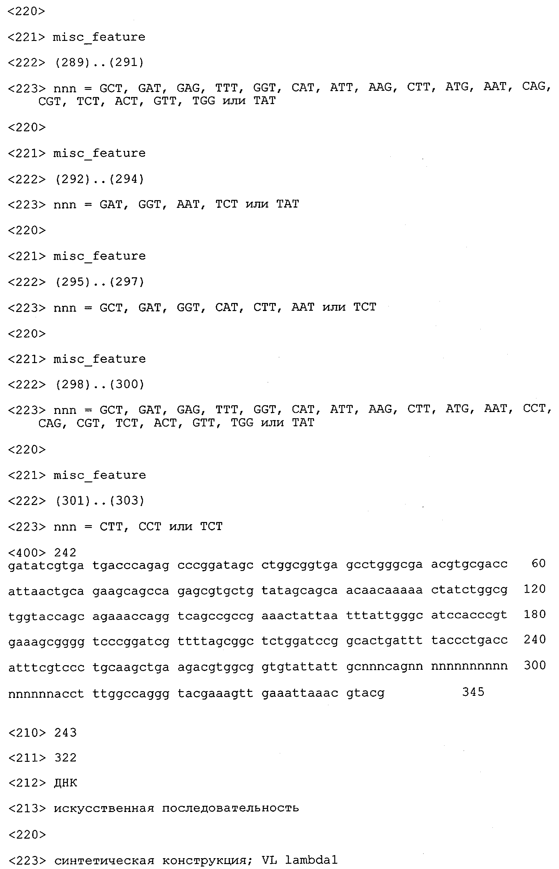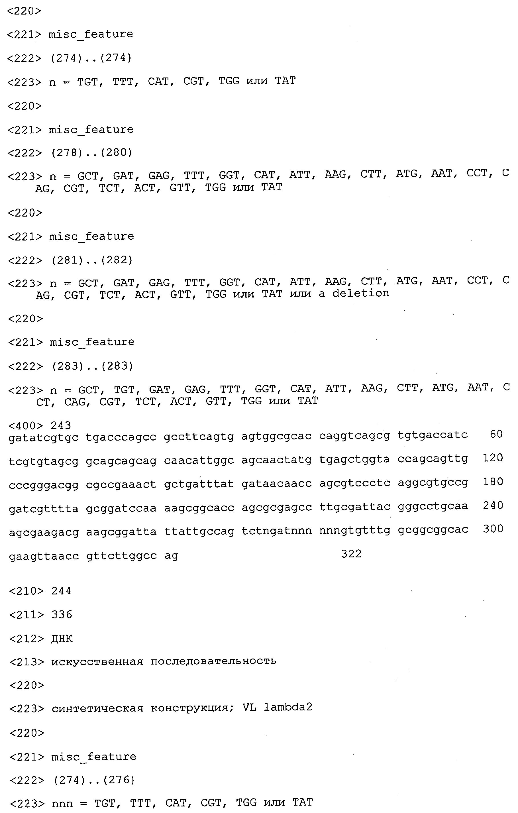 Как описано ниже в примерах, среди прочего можно с помощью методов генной инженерии, известных в данной области, переносить также полные легкие цепи из оптимизированного клона-донора в оптимизированный клон-реципиент. Примером оптимизированного клона-донора является, например, L-CDR1 (L1), а примером оптимизированного клона-реципиента является H-CDR2 (Н2). Можно достигать консервативной эпитопспецифичности путем объединения клонов, которые несут одинаковые H-CDR-3-участки. Дополнительные детали проиллюстрированы в примере 13.
