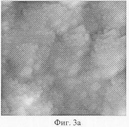 На фиг.3а и фиг.3б показаны полученные с помощью атомно-силового микроскопа (АСМ) изображения вещества покрытия, смоченного малым количеством спирта и затем подсушенного. Площадь изображения на фиг.3а равна 4,8×4,8 мкм, на фиг.3б 2,2×2,2 мкм.