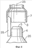Фиг.4 изображает предпочтительное воплощение изобретения, в котором впускной трубопровод (7) снабжен несколькими направляющими устройствами (28), из которых для ясности показано лишь одно из них и которые в ходе эксплуатации дополнительно способствуют тому, чтобы трубопроводы (4) и (7) оставались в коаксиальном положении относительно оси (25). Направляющие приспособления (28) предпочтительно закрепляют на трубопроводе (7) и они способствуют тому, чтобы движение впускного и выпускного трубопроводов относительно друг друга происходило только в аксиальном направлении. Рассматриваемые направляющие приспособления (28) дополнительно обеспечивают уменьшение вихревого движения газа, выходящего из отверстия (5).