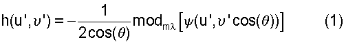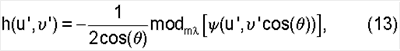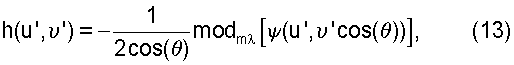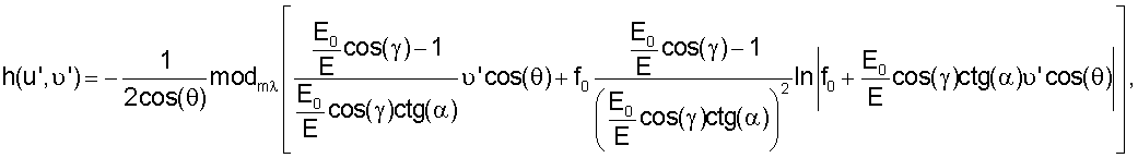 – угол между нормалью к плоскости зонной пластины 2 и падающим лазерным лучом; u’, ‘ – координаты в плоскости зонной пластины 2; – длина волны лазерного излучения; m – натуральное число, определяющее высоту микрорельефа; операция modm [x] соответствует дробной части частного – x/m ; [u’, ‘cos( )) – функция эйконала.