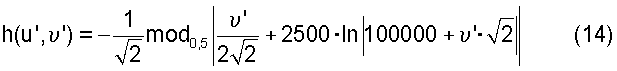 Функция является функцией аргумента х, т.е. любой величины, стоящей в скобках и обозначенной в данном случае, как х. Таким образом, функция математически означает остаток и равняется остатку от деления аргумента х на величину, указанную в подстрочнике, т.е. на произведение m· . Ранее (выше) аргументом является (стоит в скобках) сложное выражение от величины ‘, но смысл выражения остается тем же – это остаток от деления величины, стоящей в скобках, на величину m· . Например, в формуле (14) m· =0,5, а