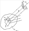 Поверхность отражающей зонной пластинки 2 освещается пучком когерентного света лазера 1. В процессе преобразования волнового фронта освещающего пучка за счет отражения от поверхности зонной пластинки 2 с микрорельефом h(u’, ‘), где u’, ‘- декартовы координаты в плоскости зонной пластинки 2 (см. фиг.2), необходимо сформировать волновой фронт, обеспечивающий фокусировку на поверхность двухгранного угла с равномерным распределением освещенности. Пусть в плоскости с координатами (u, ), расположенной между поверхностью зонной пластинки 2 и освещаемым двухгранным углом по ходу оптических лучей и перпендикулярной плоскости симметрии двухгранного угла, поле характеризуется функцией эйконала (u, ). Для нахождения выражения функции эйконала (u, ) преобразованной волны рассмотрим отображение, осуществляемое лучами, выходящими из плоскости (u, ), расположенной между поверхностью зонной пластины 2 и двухгранным углом по ходу отраженных оптических лучей и перпендикулярной плоскости симметрии двухгранного угла, и лучами, падающими на двухгранный угол.