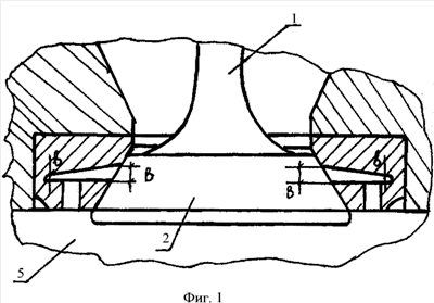 Работает газораспределительный механизм следующим образом. Когда происходит очистка полости цилиндра 5 от выхлопных газов и поршень начинает движение из н.м.т. вверх по стрелке А (работа, например, двухтактного двигателя 14Д40 подробно описана в книге, представленной в описании прототипа) и клапан является открытым (см. фиг.2), пропуская отработанные газы, которые протекают по стрелкам С не только в пространстве зоны, образованной головкой 2 и стержнем 1 клапана, но и по клапанам 7 и круговом пазу 6 седла 3. Увеличение проходной зоны отработанных газов через указанные элементы способствует лучшей очистке полости цилиндра 5 от отработанных газов. Как только поршень (он на чертежах не показан) переместится по стрелке А до определенного положения, клапан закрывается и принимает такое состояние, как это показано на фиг.1. В этом случае проход рабочей смеси в выхлопное пространство 4 цилиндра 5 прекращается, так как клапан своей головкой 2 плотно садится в седло 3, перекрывая также его каналы 7 и круговой паз 6. Следует отметить, что контакт головки 2 клапана с седлом 3 в серийных конструкциях газораспределительных механизмов происходит резко с возникновением ударной нагрузки в этой зоне. Однако в предлагаемой конструкции такие ударные нагрузки демпфируется за счет упругой деформации части седла 3, которая происходит при уменьшении размера «В» кругового паза 6 так, как это показано на фиг.3. Такие упругие деформации части седла 3 возможны за счет применения для него материалов, обладающих не только жаропрочными, но и упругими свойствами. Деформирующая способность седла 3 увеличивается не только за счет наличия кругового паза 6, обеспечивающего его податливость в направлении стрелки А, но и за счет того, что в нем расположена газовая смесь, находящаяся под высоким давлением, создаваемым поршнем, перемещающимся в В.М.Т. После перехода В.М.Т. поршень двигается в противоположную сторону и в конце рабочего его хода клапан занимает такое положение, как это показано на фиг.2. Далее процесс работы газораспределительного механизма многократно повторяется, подобно тому, как это описано выше.