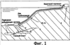 фиг.1 – контур подводного месторождения газа, трубопроводы от месторождения к берегу и береговые установки;