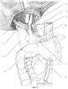 03.07.05 г больной оперирован. Под общим обезболиванием с ИВЛ выполнена расширенная верхнесрединная лапаротомия с иссечением старого послеоперационного рубца и аппаратной коррекцией доступа ранорасширителем Сигала. В области ворот печени, больше справа, резко выраженный рубцово-склеротический процесс. Под гепатодуоденальной связкой в области ворот печени имеется небольшой старый желчный затек. Рассечена брюшина гепатодуоденальной связки и выделены ее элементы. С помощью ультразвукового скальпеля резецирована паренхима в области ворот печени с обнажением магистральных трубчатых структур. При этом обнаружено изолированное повреждение внутрипеченочной части правого долевого протока. Проток прошит и легирован капроновой лигатурой на 3 см проксимальнее бифуркации (фиг.1). Проксимальнее и дистальнее места повреждения имеется выраженная рубцово-склеротическая трансформация протока. В шов подхвачена передняя стенка правой долевой воротной вены, имеется ее стеноз. Левый долевой проток, левая стенка бифуркации, гепатикохоледох интактны. Выполнена резекция внутрипеченочной части правого долевого печеночного протока вплоть до бифуркации долевых протоков, при этом резецировано устье желчного протока к 1 сегменту печени. Произведена краевая резекция передней стенки правой ветви воротной ветви с ее аутопластикой.