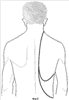 – на фиг 1. изображен вид больного после удаления опухоли, и обозначены границы дефекта; ниже изображен дизайн торакодорзального лоскута;