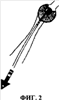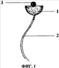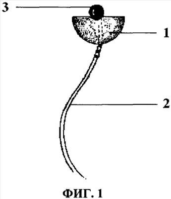 Сущность устройства для лечения трахеопищеводного свища поясняется чертежами, где на Фиг.1: 1 – основная часть, 2 – лента, 3 – шаровидный элемент; на Фиг.2 представлено устройство в положении обтурации трахеопищеводного свища.