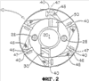Как показано на фиг.2, фрезерная головка 10 включает в себя одну или несколько и предпочтительно множество опор 46 элементов фрезерования, которые образуют как часть верхней части 14 фрезерной головки 10, предпочтительно на ее конце. Опора 46 элемента фрезерования включает в себя цилиндрический канал, предпочтительно снабженный резьбой и предназначенный для размещения соединительного элемента или крепежного изделия 48, такого как винт. В одном варианте реализации, показанном на фиг.2, элемент 40 фрезерования включает в себя лицевую поверхность, имеющую коническую зенковку или выемку, окружающую канал, через который крепежное изделие соединяет элемент 40 фрезерования с участком фрезерной головки, то есть опорой 46 элемента фрезерования.