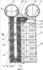 Используют четырехходовые изогнутые трубы 5 с двумя внешними 10, 13 и двумя внутренними 11, 12 прямолинейными ветвями и объединяющими их тремя коленами – двумя внешними 14, 16 и одним внутренним 15, а при набивке пучка 17 труб 5 их располагают рядами 19, 20 по высоте с расстоянием между продольными осями труб 5 в смежных рядах 19, 20, составляющим 0,6-1,5 диаметра трубы 5. В смежных по высоте рядах 19, 20 трубы 5 смещают на 0,4-0,6 шага между продольными осями прямолинейных ветвей 10, 11, 12, 13 труб 5 в ряду 19, 20, величину которого принимают равной 1,5 – 2,3 диаметра трубы 5, в каждом четном ряду 19 набивают нечетное число труб 5, предпочтительно не менее трех и не более девяти, а в каждом нечетном ряду 20 – четное число труб 5, предпочтительно не менее двух и не более десяти, при этом ряды 19, 20 труб 5 и трубы 5 в каждом ряду 19, 20 отделяют друг от друга по вертикали и горизонтали дистанцирующими элементами. Для отделения внешних ветвей 10, 13 труб 5 по вертикали и горизонтали используют дистанцирующие элементы в виде разделительных решеток (на чертежах не показано) с отверстиями для прохода труб 5. Для отделения внутренних ветвей 11, 12 используют дистанцирующие элементы в виде складчатых пластин 24 с расположенными с двух их сторон чередующимися опорными участками 25, 26. При установке складчатых пластин 24 опорные участки 25 на нижней стороне вышележащих пластин 24 опирают на опорные участки 26 на верхней стороне нижележащих пластин 24 с образованием между ними ячеек для установки труб 5. Дистанцирующие элементы 24 предпочтительно выполняют толщиной, составляющей не менее 0,03 диаметра трубы 5, и на внешних 10, 13 и внутренних 11, 12 ветвях труб 5 располагают по длине труб 5 предпочтительно с одинаковым шагом. Используют дистанцирующие элементы в виде складчатых пластин 24 с опорными участками 25, 26, имеющими опорную поверхность в виде фрагмента цилиндрической поверхности радиусом, составляющим не более 35% диаметра трубы 5, или используют дистанцирующие элементы в виде складчатых пластин 24 с опорными участками, имеющими плоскую опорную поверхность (на чертежах не показано), или используют многорядный пучок 17 теплообменных труб 5, состоящий из по крайней мере двух пакетов 27 двухходовых U-образных труб 28, образующих в пределах каждого пакета 27 двухветвевые, например, горизонтальные ряды труб 28, дистанцированных в пределах ряда и между рядами друг от друга, коллектор подвода 3 и коллектор отвода 4 нагреваемой среды и расположенную между ними по крайней мере одну перепускную камеру 29, причем коллектор подвода 3 и коллектор отвода 4 нагреваемой среды, а также перепускная камера 29 соединены с теплообменными трубами 28 общей для них трубной доской 30 или раздельными трубными досками (на чертежах не показано), по крайней мере часть которой 30 или которых образует часть стенового ограждения коллектора подвода 3 и коллектора отвода 4 нагреваемой среды и перепускной камеры 29.