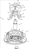 На фиг.3 показан частичный вид в продольном сечении патронного элемента 1 и прикрепленного к нему цангового элемента 2. Цанговый элемент 2 прикреплен к патронному элементу 1 посредством зажимных шариков 17, входящих в зацепление с упорной поверхностью 29, выполненной на плече 28. Зажимные шарики 17 прижимаются радиально внутрь посредством упорной поверхности 20 соединительной гайки 19, при этом последняя поворачивается вручную в ее рабочее положение, которое показано на фиг.3. Благодаря тому, что зажимные шарики 17 толкаются к упорной поверхности 29 плеча 28 цангового элемента 2, цанговый элемент 2 прижимается к патронному элементу 1 в направлении Z. Приводной палец 3, выполненный для принудительного отведения друг от друга зажимных захватов 24 цангового элемента 2, показан на фиг.3 в его верхнем рабочем положении. Когда приводной палец 3 толкается вверх, его коническая упорная поверхность 4 входит в зацепление со стеночной частью углубления 34 и конически расширяет стеночные части, соответственно 35а и 35b, в результате чего зажимные захваты 24а, 24b и 24с (а также захват 24d, который на фиг.3 не показан) цангового элемента 2 принудительно отводятся друг от друга в радиальном направлении.