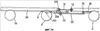 Фиг.8 схематично иллюстрирует, на виде в плане, сцепное устройство 2, описанное со ссылкой на фиг.7 и 7А, когда прицеп расположен под углом к тягачу. Можно видеть, что следящее звено 20 развернулось в горизонтальной плоскости вокруг оси шарнира 202. С помощью вспомогательных следящих звеньев 206 это движение передано поворотной плите или подрамнику прицепа.