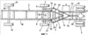 Фиг.7 иллюстрирует, на виде в плане, пятый вариант сцепного устройства по изобретению, связанного с прицепом и тягачом.