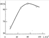 На чертеже представлена зависимость выхода по току основного карбонат двухвалентного кобальта от плотности тока при давлении диоксида углерода 0,5 МПа и количестве пропущенного электричества 0,5 А·ч в 1,0 М растворе карбоната аммония. С увеличением плотности тока происходит уменьшение выхода по току. С увеличением плотности тока до 80 А/м2 происходит увеличение выхода по току, дальнейшее повышение приводит к увеличению скорости процесса выделения кислорода на кобальте, что приводит к уменьшению выхода по току.