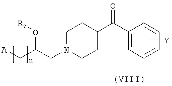 13. Рацемическое или энантиомерно обогащенное производное алкоксибензоилпиперидина, представленное структурной формулой (VIII):