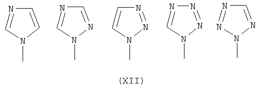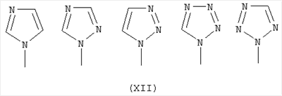 Y выбирают из группы, состоящей из водорода, галогена, нормального или разветвленного алкила с числом атомов углерода от 1 до 4 и нормального или разветвленного алкоксила с числом атомов углерода от 1 до 3; и Х представляет собой остаток имидазола, триазола или тетразола следующих формул (XII):