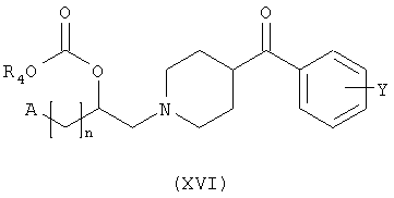 17. Рацемическое или энантиомерно обогащенное производное бензоилпиперидинкарбоната, представленное структурной формулой (XVI):
